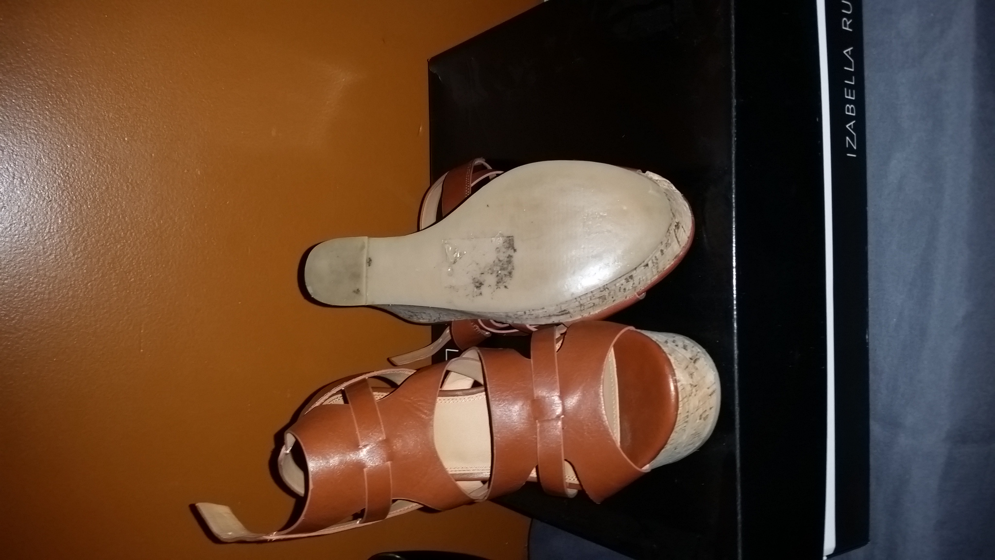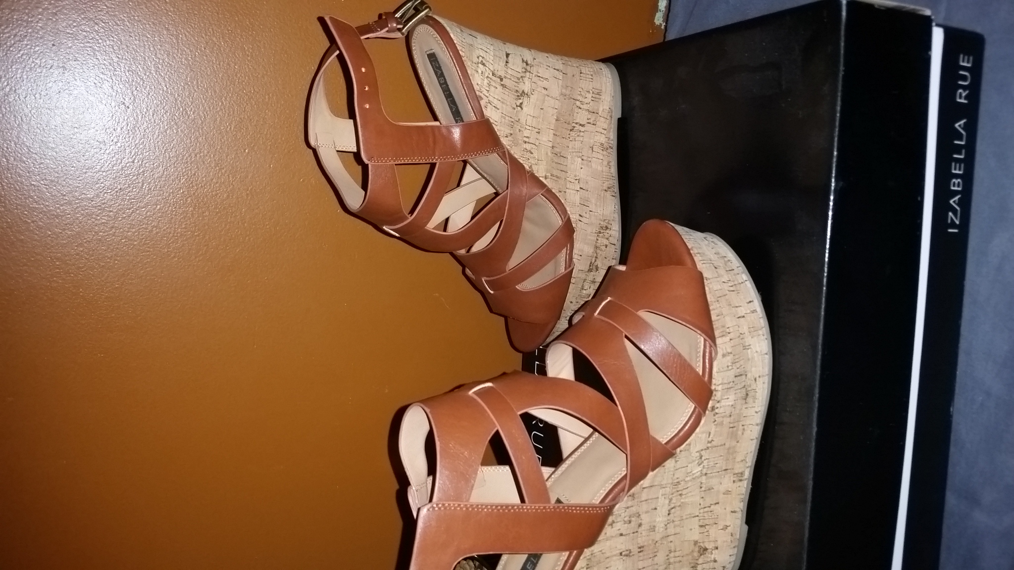 Brown Strappy Wedges w/Cork Heel Size 9