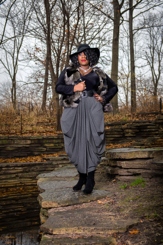 Grey Drape Maxi Skirt from designer Yona New York. Skirt is ultra chic and versatile.